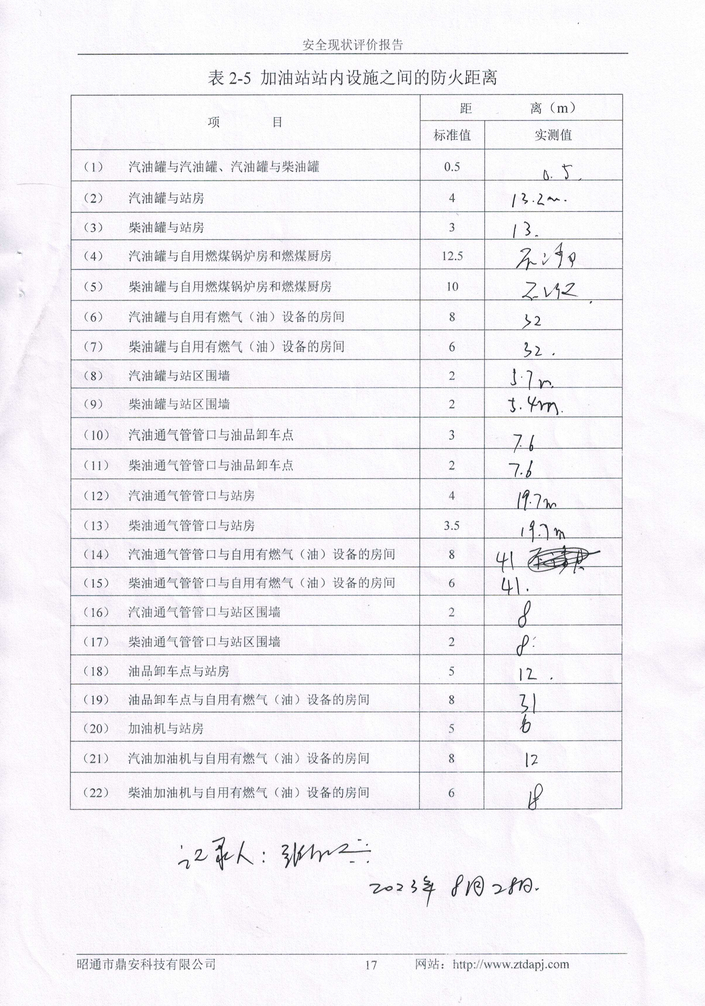 評價結論為:依據《中華人民共和國安全生產法》、《危險化學品安全管理條例》、《危險化學品經營許可證管理辦法》、《云南省安全生產監(jiān)督管理局關于危險化學品經營行政許可有關事項的通知》(云安監(jiān)管〔2013〕13號)、《安全評價通則》、《危險化學品經營企業(yè)安全評價細則》、《汽車加油加氣加氫站技術標準》(GB50156-2021)等安全生產法律法規(guī)、部門規(guī)章、標準和規(guī)范的要求,從安全的角度曲靖市沾益區(qū)福順石化有限公司符合現行的危險化學品經營的要求,具備危險化學品經營的安全條件。 | ||||||||