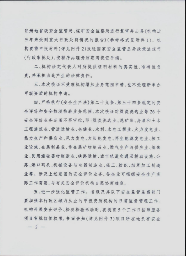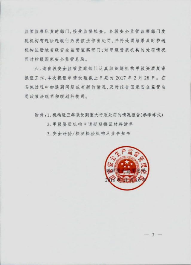 《國家安全監管總局關于安全評價與安全生產檢測檢驗機構甲級資質延期換證有關工作的通知》
