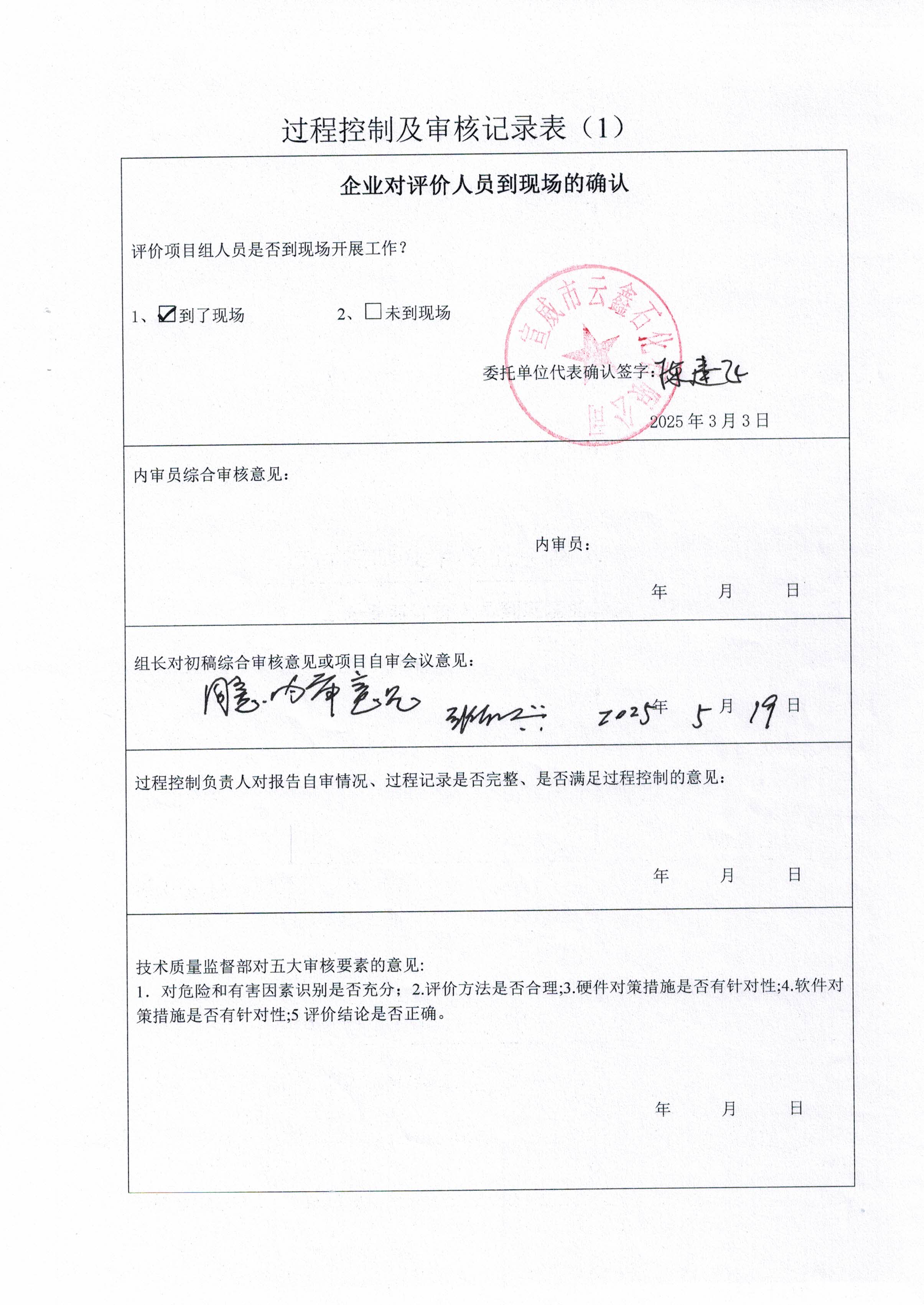 過(guò)程控制審核 | 內(nèi)審意見(jiàn)(√ 通過(guò) 口 不通過(guò) ) √ 是 口 否 | |||||||